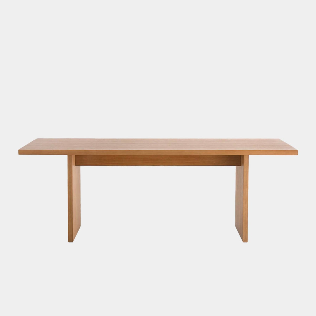 A Vintage Cassina La Basilica Dining Table by Mario Bellini, featuring a wooden rectangular design with a simple aesthetic and four legs, evocative of the iconic architectural style.