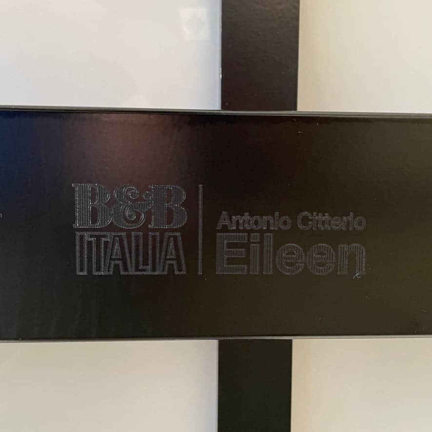 The Eileen dining table, created by Antonio Citterio for B&B Italia, features a white glossy lacquered top with sculpted edges and a robust chrome base with a cross motif. This table offers a striking and elegant focal point for entertaining that is sure to impress.