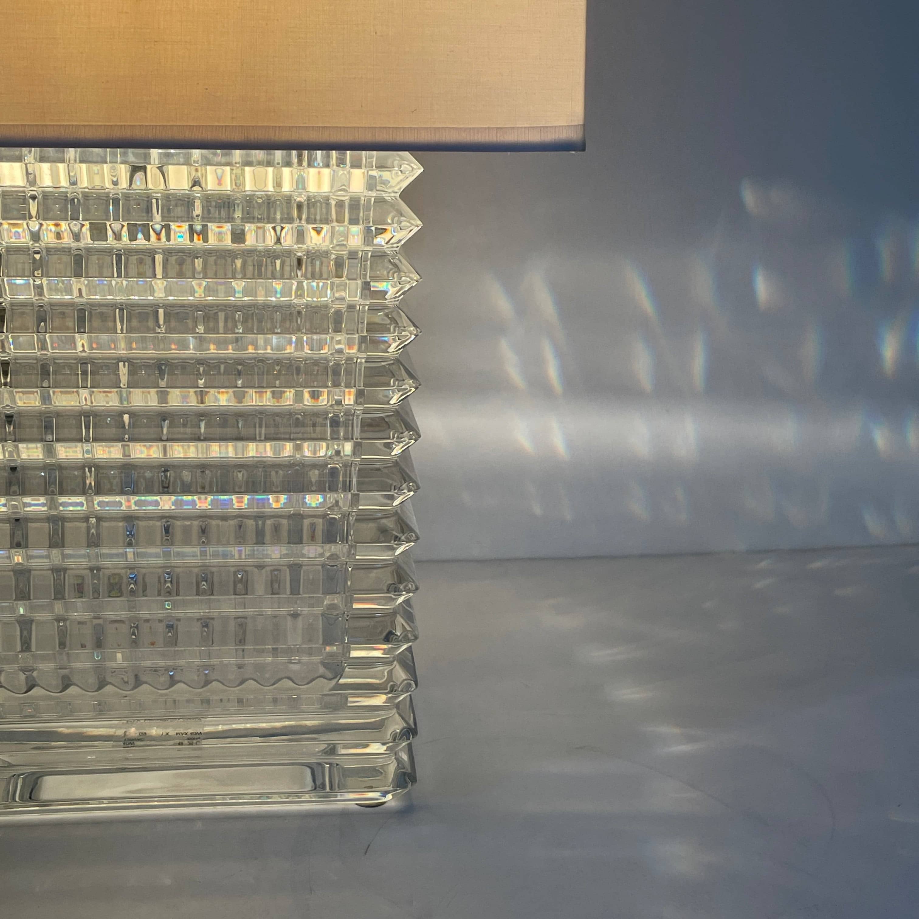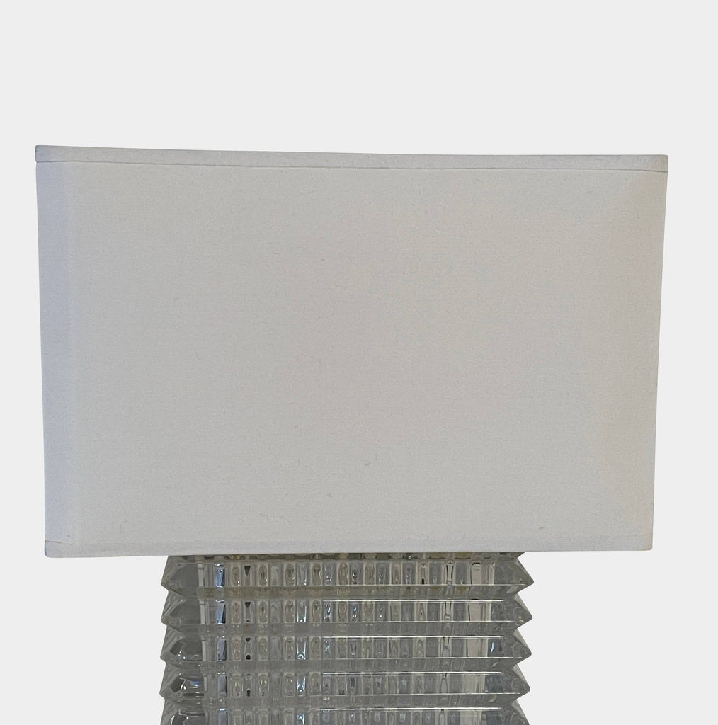 An elegant Baccarat Eye Table Lamp with a white shade designed by Nicolas Triboulot.