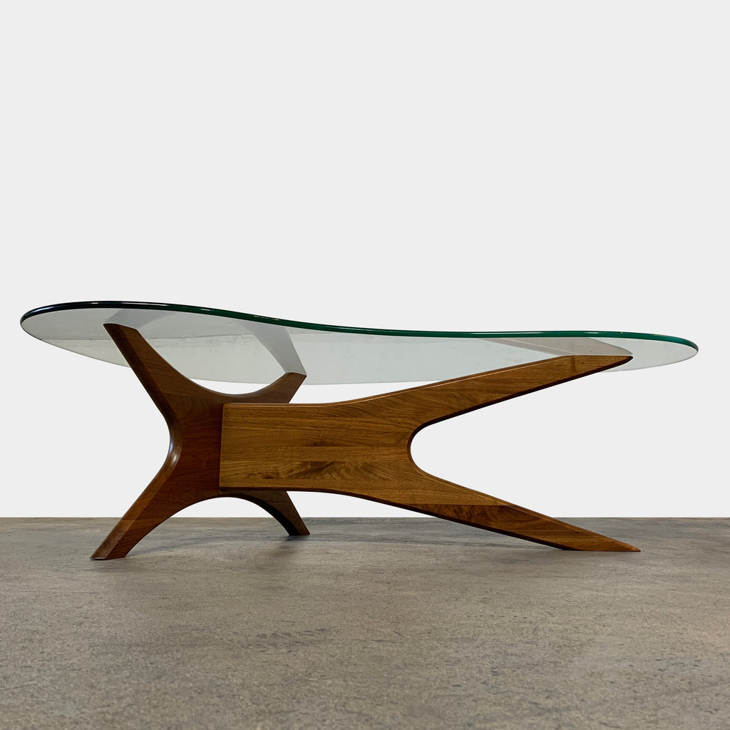 Material: Solid Walnut, Original Kidney Shaped Glass Top