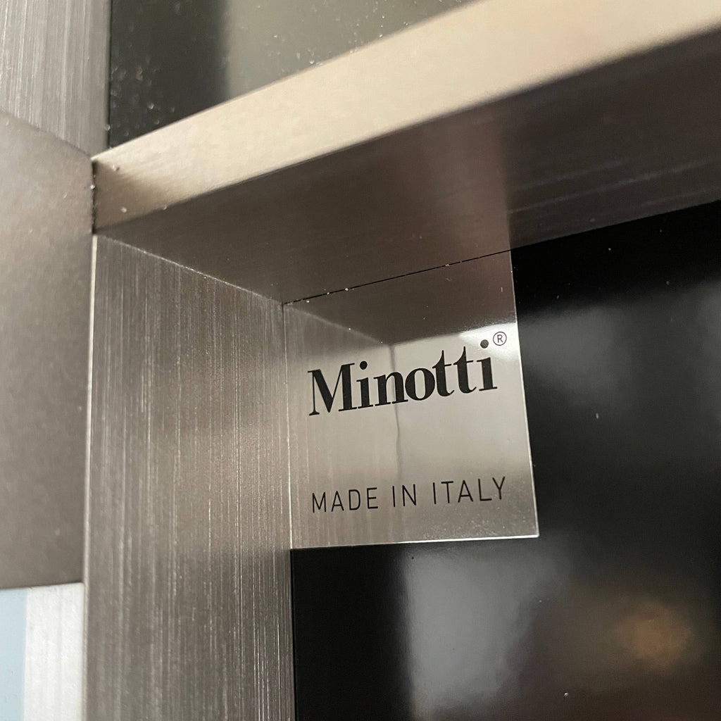 The Minotti Close console table is an ideal combination of form and function, easy and unassuming it’s sure to be a good fit in most any room where an elongated surface is needed. Its base is designed with a bronze-finished metal, and the upper part consists of an open shelf with a mat lacquered Clay structure and a top in open pore Moka lacquered oak. For a stunning presentation, be sure to dress it up with your favorite lamp, objects or books!
